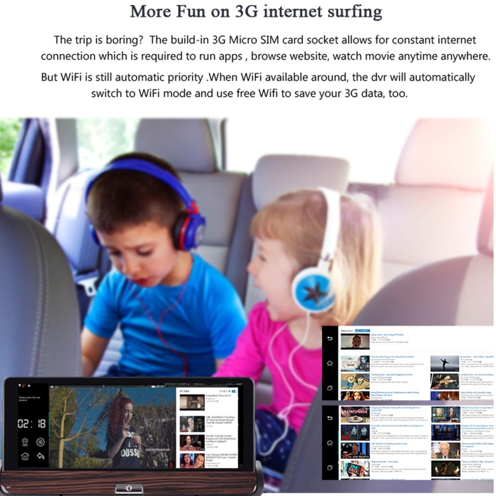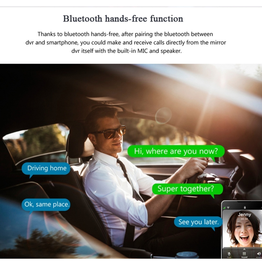 8.Camera Lens Front camera: Full HD1080P, rear camera:rear camera 640*480P (night vision rear camera can be optional)
