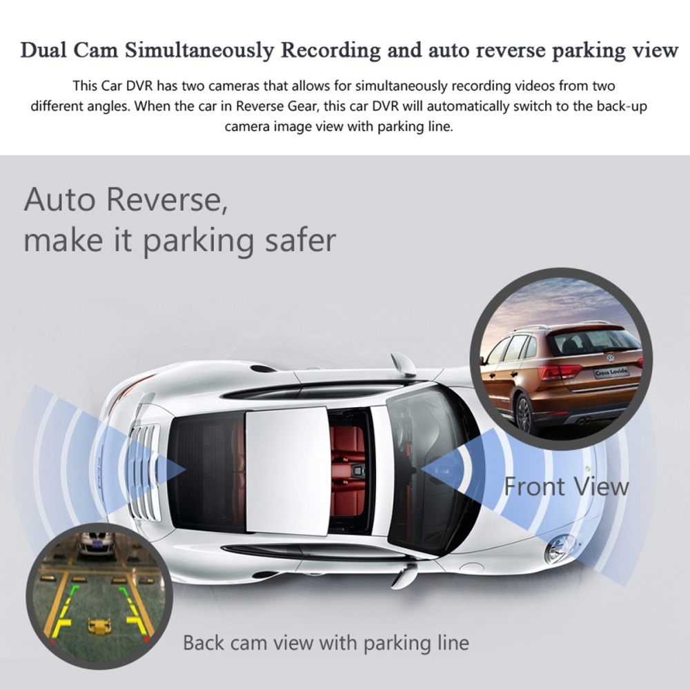 6. Dual lens,front view and rearview car recorder