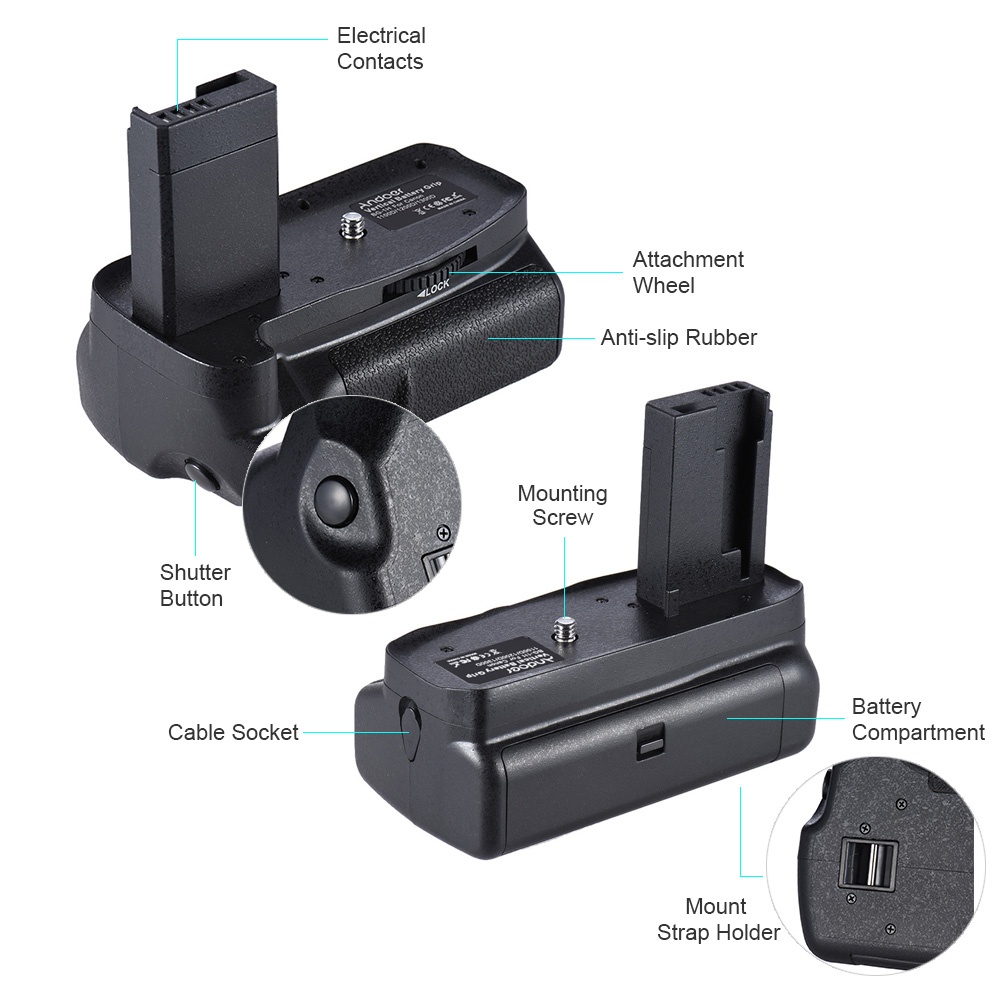 Spesifikasi dari Andoer BG-1H Vertikal Grip Compatible With 2 * LP-E10 For