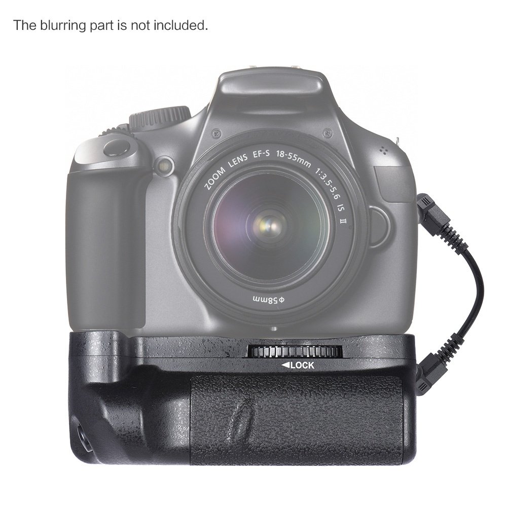 Pro battery grip for Canon EOS 1100D 1200D 1300D / Rebel T3 T5 T6 / kiss X50 X70 cameras. Can hold one or two LP-E10 battery to prolong your shooting time. Built-in shutter release for ease of shooting in vertical position.