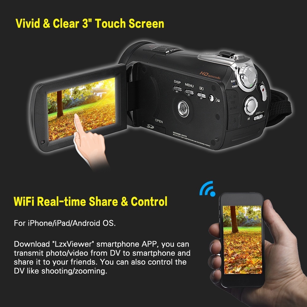 WiFi-smartphone "LzxViewer" APP connection enable you to share image / control the DV.