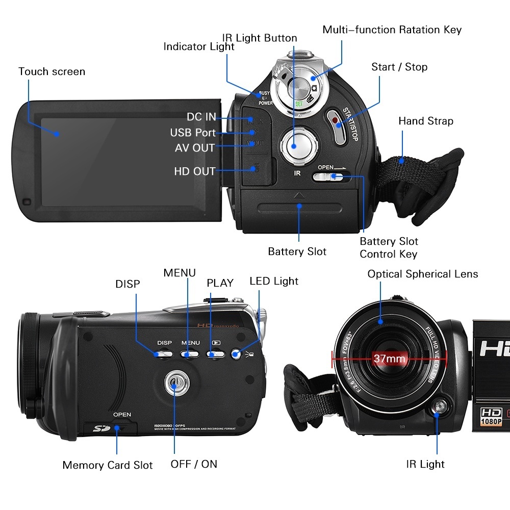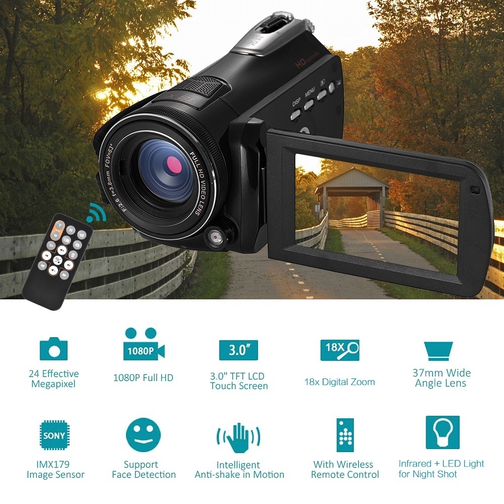 Detail produk dari Andoer HDV-D395 Digital Kamera Video DV WiFi 1080 P 30fps FHD 24 M 18X Zoom Camcorder dengan Remote Control/ IR Inframerah Night Vision + Light/3 "Layar Sentuh Dukungan Face Detect/Anti-Shake-Intl