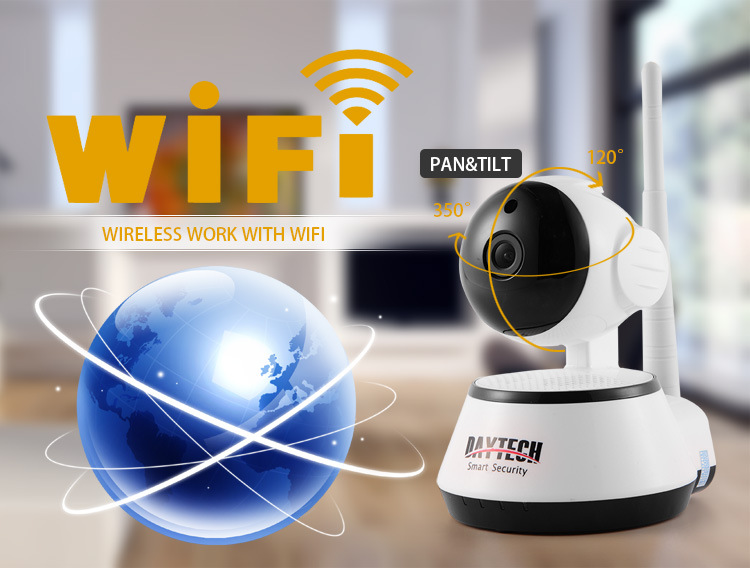 The DAYTECH ProHD 720p Wi-Fi video camera helps you stay in touch with what you love anytime, anywhere. With its quick mobile setup process, you will have secure access to your camera's video stream in no time. Stream live and playback recorded video of your home, your kids, your pets, or your business on the go with the View app. DAYTECH supportes any device including Windows PC, iPhone or Android devices. DAYTECH cameras also record to an internal MicroSD card (not included), .Each DAYTECH camera features two-way audio , night vision, remote 350 degrees pan 120 degrees tilt , smart motion alerts, email alerts and snapshots, advanced recording options, DAYTECH ProHD 720P (1MP) WiFi Security IP Camera DT-C8815C (White): Sony Image Sensor &Quick Setup / Remote Web Access from Smartphone orPC / Storage to MicroSD, Pan and Tilt / Night Vision / Two-Way Aduio / Smart Motion Alerts(you can set up the function on the app, when motions break in, IP Camera can local alarm and send the e-mail, it can be recorded if you insert a TF Card and set up. )